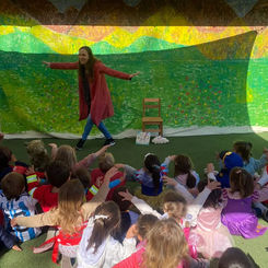Durante mis visitas, realizo actividades de animación a la lectura con rutinas de pensamiento y activaciones musicales. La cantidad de cuentos y los títulos que narro dependen de la etapa de desarrollo en la que se encuentren los niños y la cantidad de participantes por cada presentación.